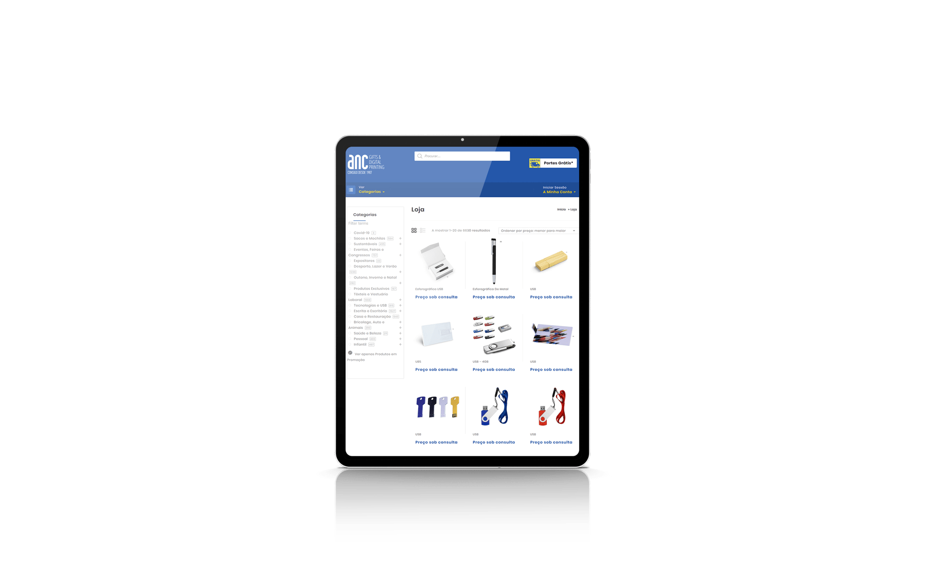 A nova Loja Online da ANC – Gifts & Digital Printing permite simultaneamente a compra de artigos ou a realização de um pedido de orçamento para os mesmos, caso estes não apresentem preço. Foi dado um grande ênfase ao SEO do website (Optimização Orgânica para Motores de Busca), de modo a potenciar os resultados dos investimentos realizados em SEA (Publicidade em Motores de Busca, ex: Google).